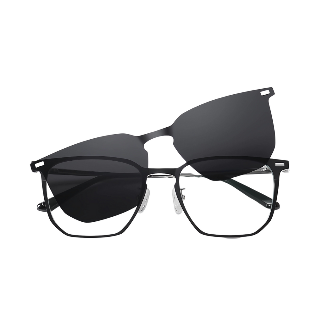 Esses óculos reunem a beleza de uma maravilhosa armação de óculos com a tecnologia CLIP ON, que com pequenos imãs transformam sua armação, em segundos.
